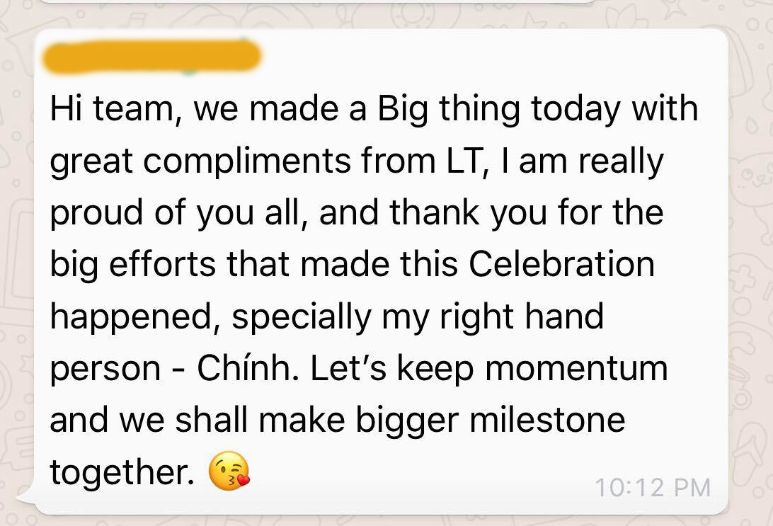 Mình viết bài này sau khi ngồi coaching cho một bạn nhỏ và nằm nghĩ tới một cơ số bạn nhỏ khác đang trực tiếp làm việc với mình (nói rõ để hiểu là, mình rất thích xây dựng con người nên ngoài những nhân sự do mình quản lý trực tiếp tại các công ty/dự án thương mại mình đảm nhiệm thì mình còn những nhân sự vì thương mà tự-nguyện-đến-quyện-cùng-nhau cho những dự án cộng đồng, dù ở trong bối cảnh nào thì nếu mình đã một lần gọi họ là #9rup (Growing Up) thì nghĩa là mình trân trọng họ thật lòng). Mình viết ra để nếu có một lúc nào đó, mình không có đủ thời gian cho các bạn nhỏ nữa, mình muốn các bạn hãy đọc nó như một món quà mình dành tặng các bạn trên hành trình lớn lên cùng hạnh phúc. Mình viết ra cũng để nhắc mình luyện tập chứ không lại quên, mà quên là chết dở. Và mình viết ra để đúc rút những bài học mình có được, nhờ vậy mà đêm qua, mình đã rưng rưng hạnh phúc nhận bánh cứu đói từ CEO, được chị HOM ôm vào lòng tự hào khoe với mọi người “Nét đẹp lao động”, được dàn HOD gửi lời cảm ơn và đến chị khó tính nhất cũng mỉm cười: You are such an inspiration <3